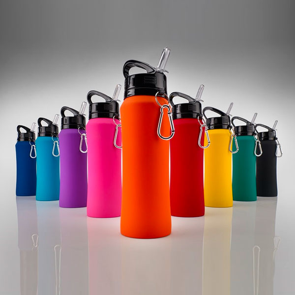 Borraccia in acciaio inox da 700 ml. La borracciaè dotata di gancio e cannuccia, che consente di bere anche in posizione verticale. La borraccia è certificata per contatto con alimenti. BPA FREE