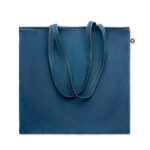 Shopper o borsa da spiaggia in tela riciclata conmanici lunghi e soffietto. 280 gr/m². Colore: nero, blu, rosso, bianco e verde.